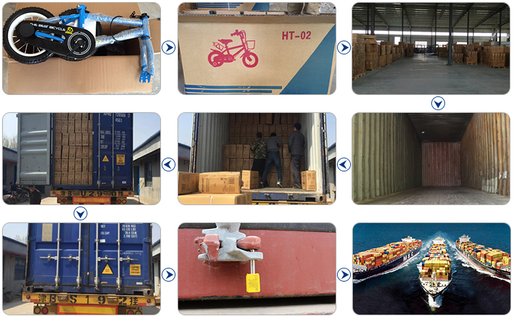 - The package is packed in 7 layers of corrugated paper and then loaded in 20 or 40 or 45 foot containers. TEU is used without overweight. 20 feet is 20*8*8 size, 40 is 40*8*8 feet. 45 is 45*8*8 feet for colorful children bikes/bicycle with cartoon basket
