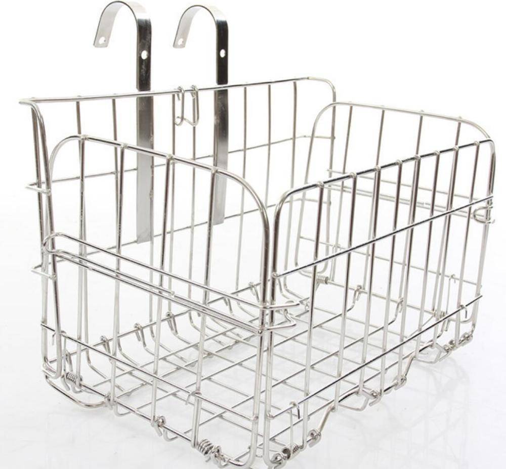 cesta de bicicleta plegable con cesta de alambre de acero inoxidable con material de gancho
