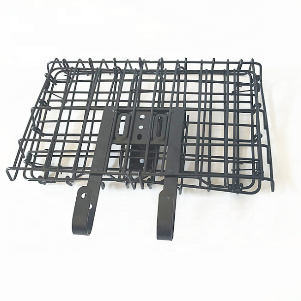 Cesta de bicicleta de malla de alambre de metal, venta al por mayor, cesta de bicicleta plegada