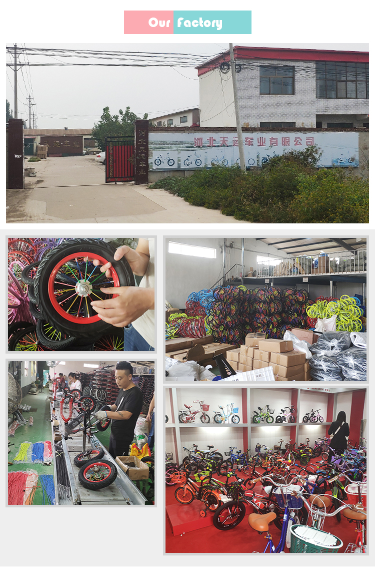 Hebei Gorgeous Bike Co., Ltd. es una empresa especializada en la producción y procesamiento de bicicletas para niños, bicicletas de equilibrio, scooters, columpio y varios tipos de accesorios para bicicletas. Contamos con un equipo de gestión de alta calidad y un equipo profesional de I + D con información rápida, una empresa de producción moderna que ofrece un meticuloso sistema de gestión de clientes. CONTAMOS CON FABRICANTES PROPIOS PARA LLANTAS Y CÁMARAS Y LÍNEA COMPLETA DE MONTAJE DE BICICLETAS. La fábrica está ubicada en la ciudad de Xingtai, provincia de Hebei. El entorno geográfico superior y las condiciones de tráfico convenientes permiten a la empresa ingresar rápidamente al mercado global y convertirse en uno de los mayores fabricantes de bicicletas para niños en China. Todos los productos están siendo desarrollados y optimizados internamente por nuestra empresa, incluida la investigación, el diseño, la ingeniería, la venta y los servicios.