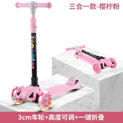 Kids bicycle Adjustable Height Kick Scooter 3 Wheels Wide Deck Back Brake Pedal
